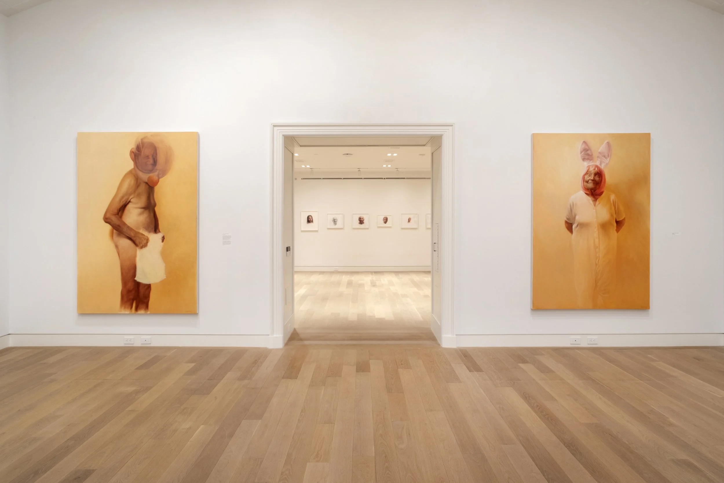 Through his practice, Yarmosky mixes traditional 17th- and 18th-century painting techniques with contemporary imagery, incorporating dreamlike elements, theatrical costume, and staged interiors that heighten a sense of intimacy. The use of costuming functions as a throughline in his work: it both conceals and reveals, able to disguise or bring out aspects of identity. The play of masks, uniforms, and imagined roles underscores how play is often discouraged as one grows older, yet reclaimed in the freedom of later life.