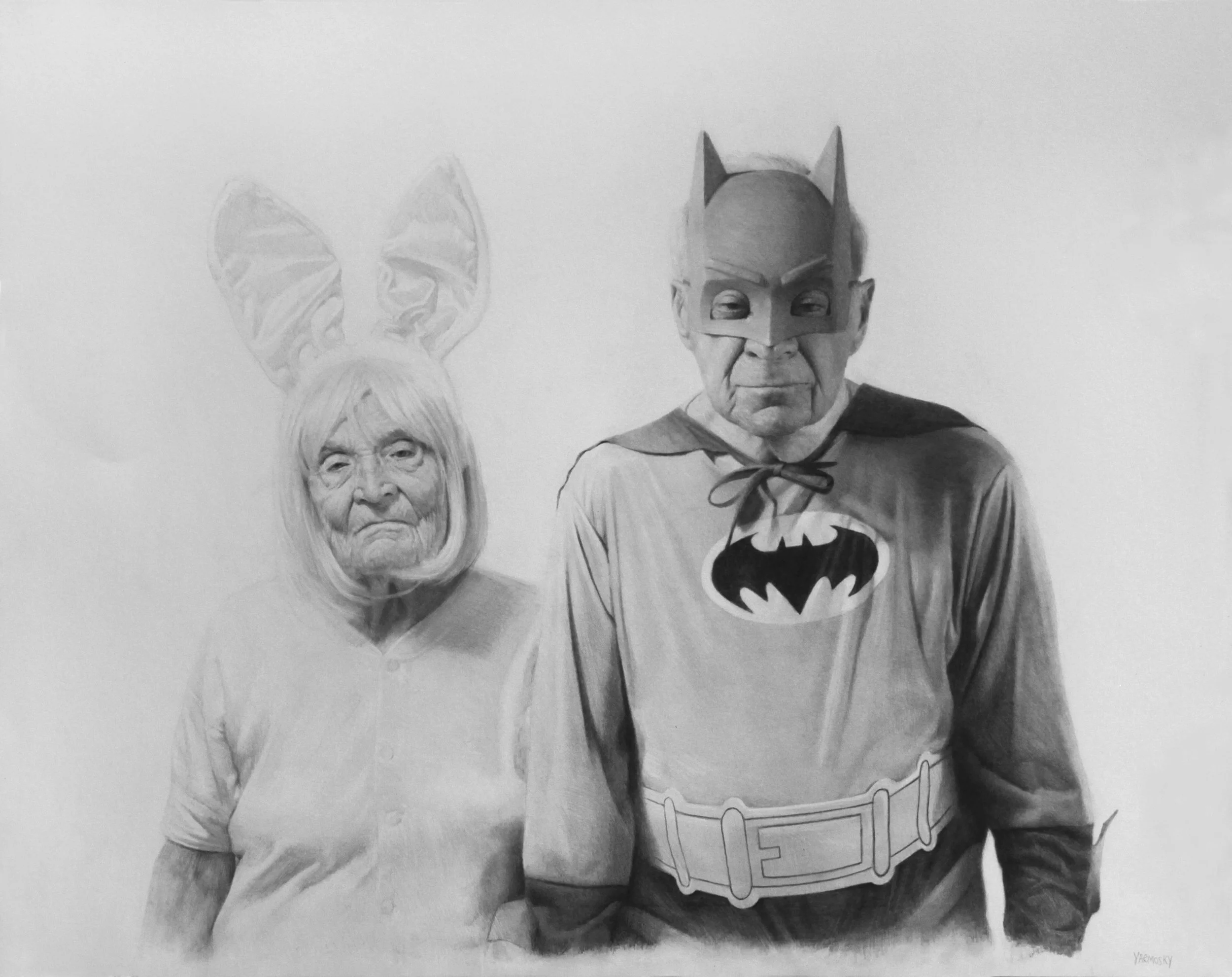 For over ten years, his grandparents were the subjects of his portraits, helping him explore the complex aspects of growing older including vulnerability, care, wisdom, and humor. These works became a celebration of aging, resisting cultural tendencies that diminish joy, individuality, and dignity in later life.